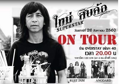 A original Thai Rock Star , Mai siplor is coming to the overstay Saturday 26 August , for a special show with his band and supporting bands Rust Jam and Anobard. Come check it out its for fans and new comers alike ! https://www.facebook.com/events/113023392659641